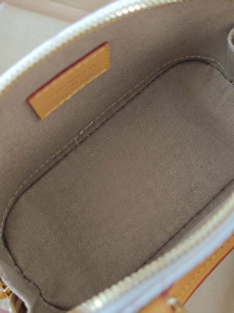 Body: Monogram coated canvas (White Cement color), featuring light-colored flocked prints on the classic pattern base. The matte texture is delicate, offering a fresher and more fashionable look than traditional Monogram canvas, and it is water-resistant, durable, and scratch-resistant.