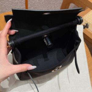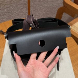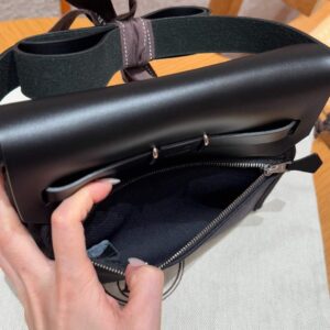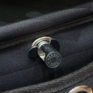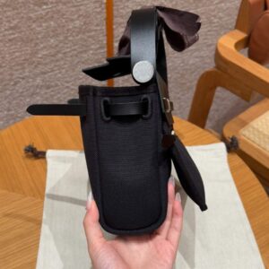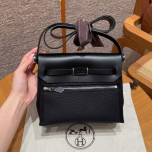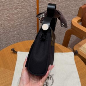 Hermès Herbag Zip Mini 20 Black Handbag, crafted from a combination of Toile H canvas and Vache Hunter leather, with silver hardware, a fixed wide shoulder strap, and a casual mini messenger bag silhouette.