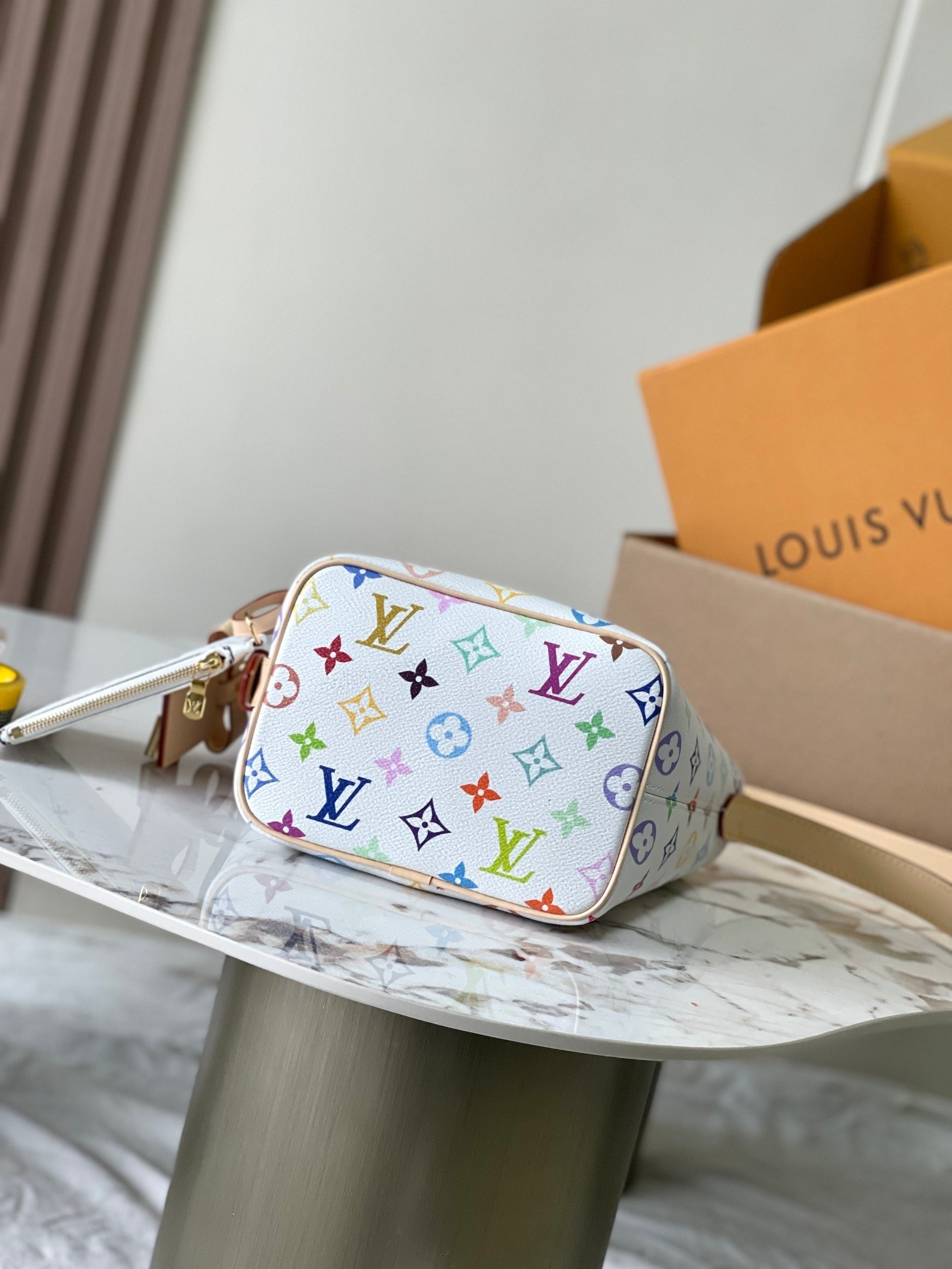 – Material: White Multicolor Monogram Canvas, Natural Cowhide Trims, Suede Lining