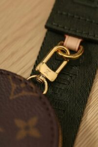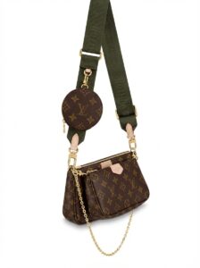 Shoulder strap: Army green jacquard canvas shoulder strap printed with the words “LOUIS VUITTON”, adjustable length, with leather connections for durability and style.