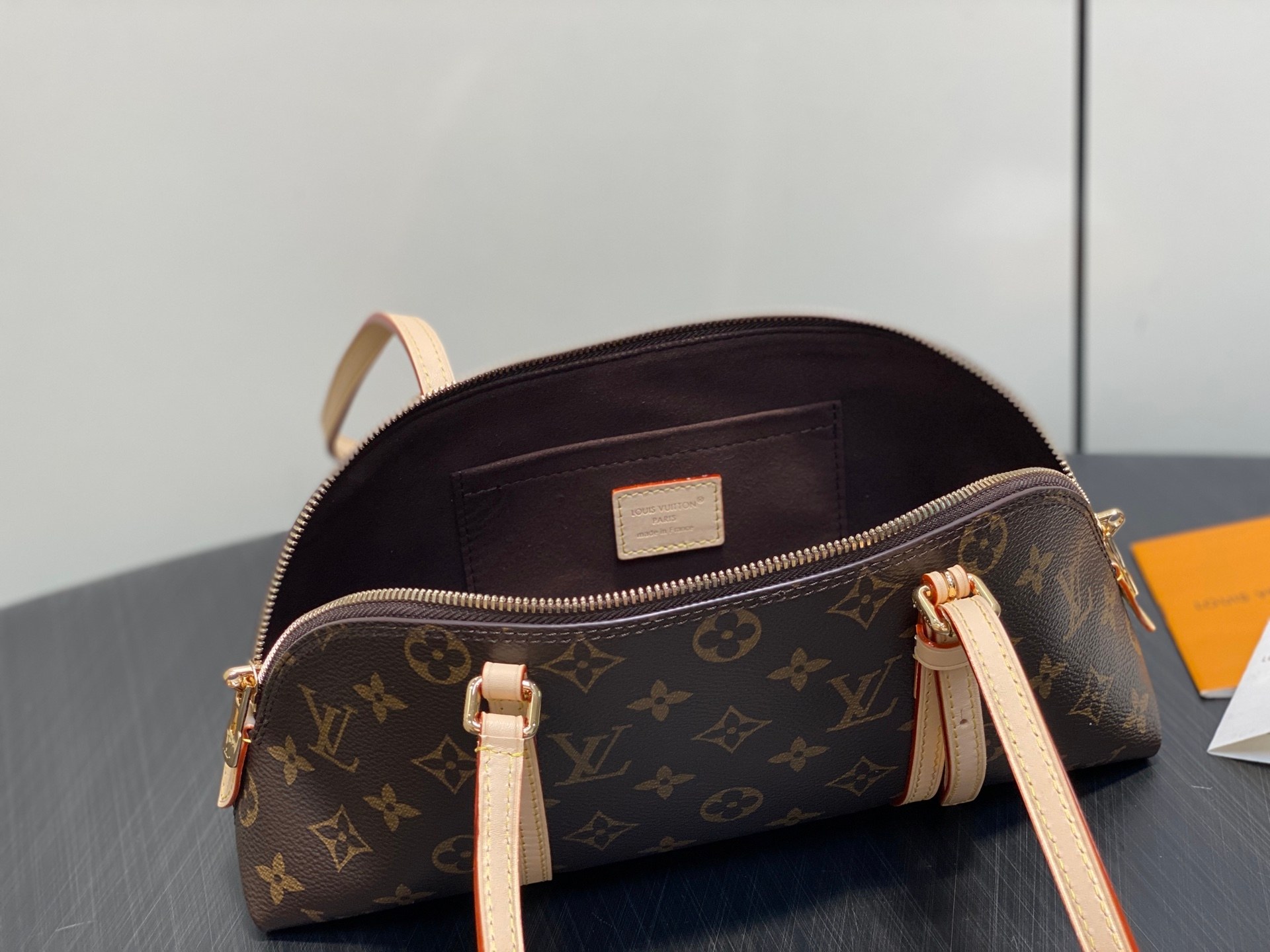 Louis Vuitton Classic Monogram Hobo Bag. Crafted from iconic Monogram coated canvas with natural cowhide leather trims and gold-tone hardware, the retro lock design offers both high recognizability and practicality, making it a hobo bag that blends vintage style and modern fashion.