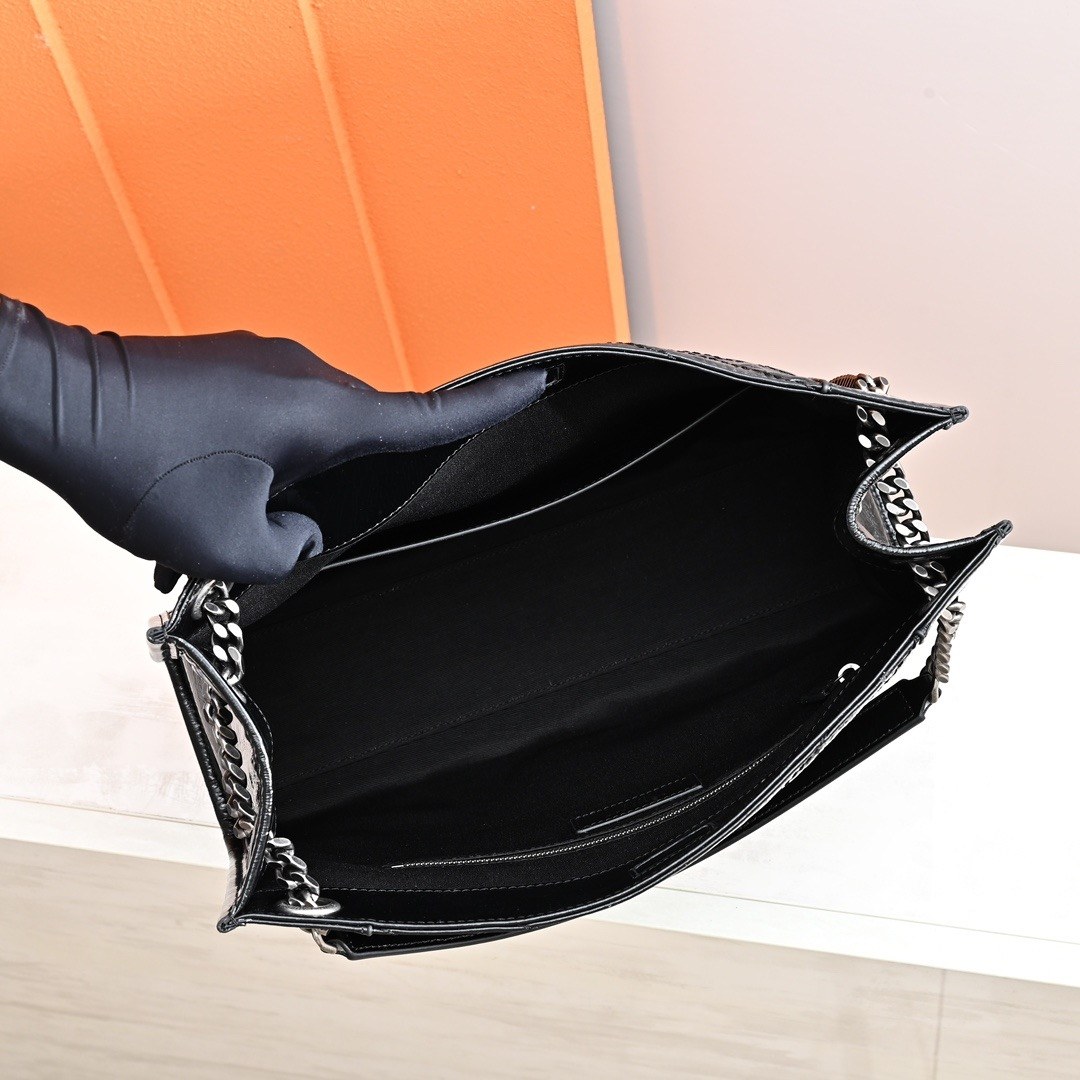 – Hardware: Silver chain hardware